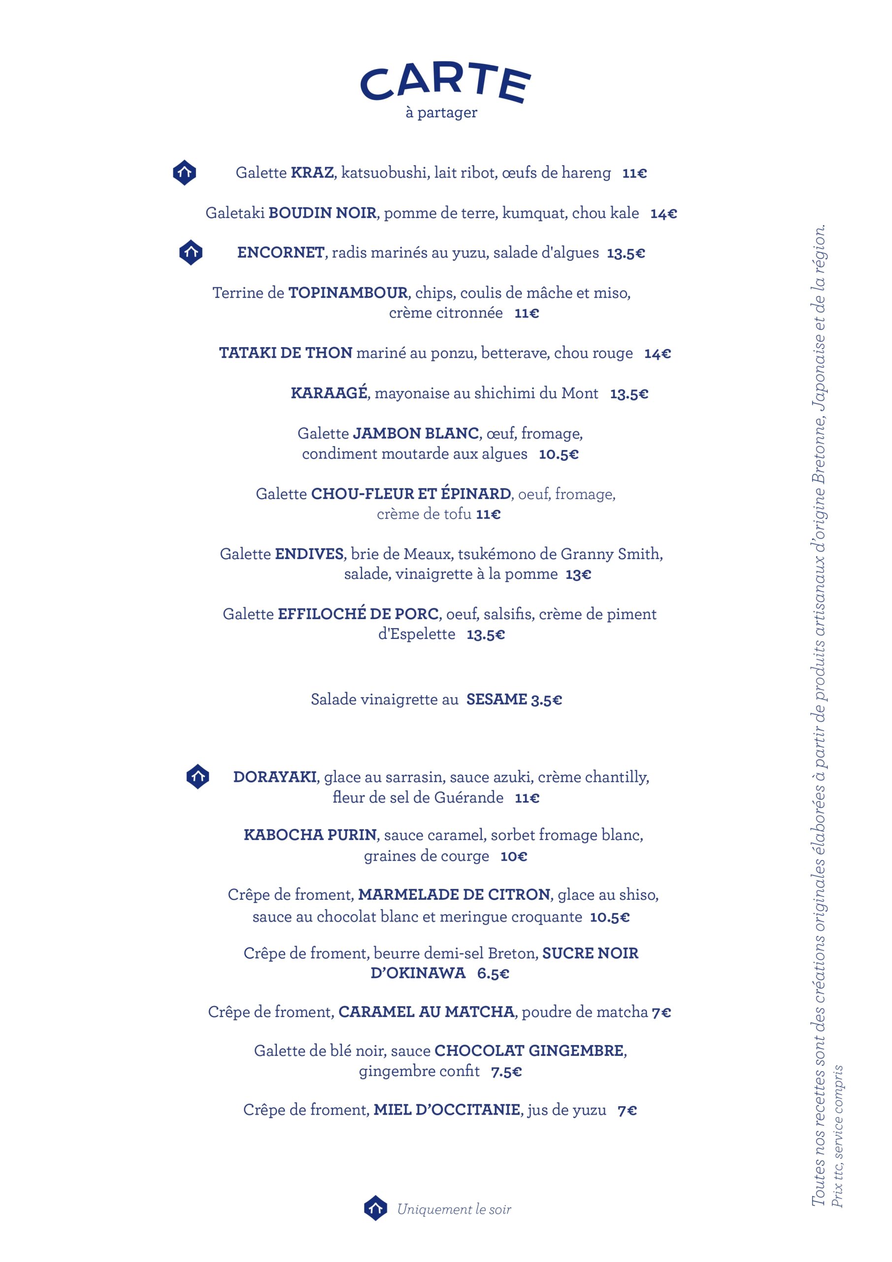 Élaborés à partir de produits de saison, d’ingrédients d’Occitanie, de Bretagne et du Japon, nos plats reflètent notre engagement pour une cuisine maison. Chaque recette est une création unique où se mêlent savoir-faire et tradition pour des signatures qui nous ressemblent.